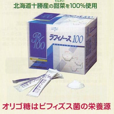 現在、腸内環境改善を目的として販売されているオリゴ糖は十数種類あります。これらオリゴ糖の多くは原料である砂糖・乳糖を酵素変換、加熱処理等を加えて人工的に製造されたものですが、ラフィノース100はビート(甜菜)糖蜜より抽出・分離した世界で唯一の純度100パーセントの天然結晶オリゴ糖です。砂糖及び消化吸収される糖質は一切含まれておらず、高いビフィズス菌増殖効果が期待できる(理化学研究所)。